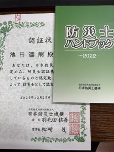 防災士として、防災・減災に関する正しい知識を身につけ、地域の皆様の安全・安心を守るための取り組みを、これから強化してまいります。